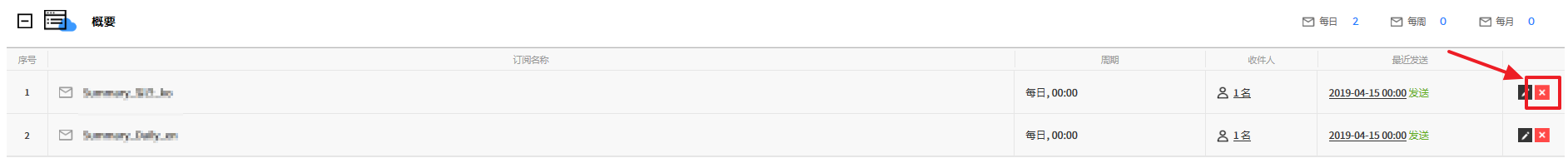 ① Select the schedule that you want to delete and click the Trash bin icon.