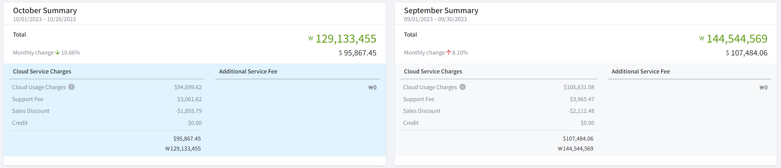 You can check the cost summary for this month. In the summary box, three different costs are displayed as shown below.
