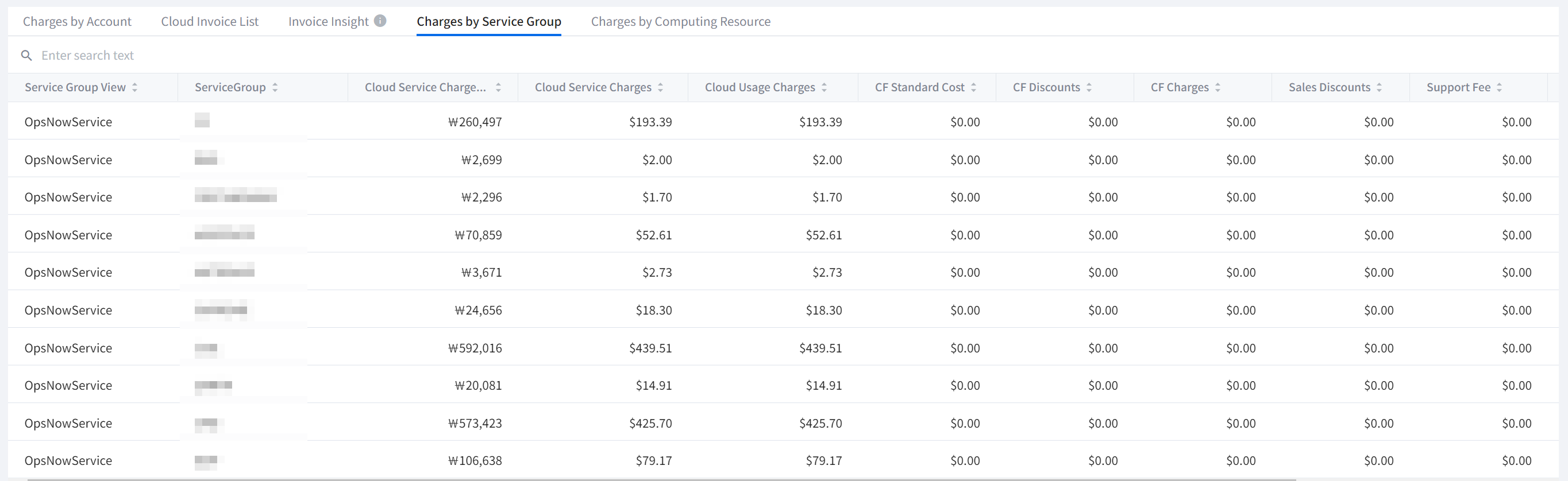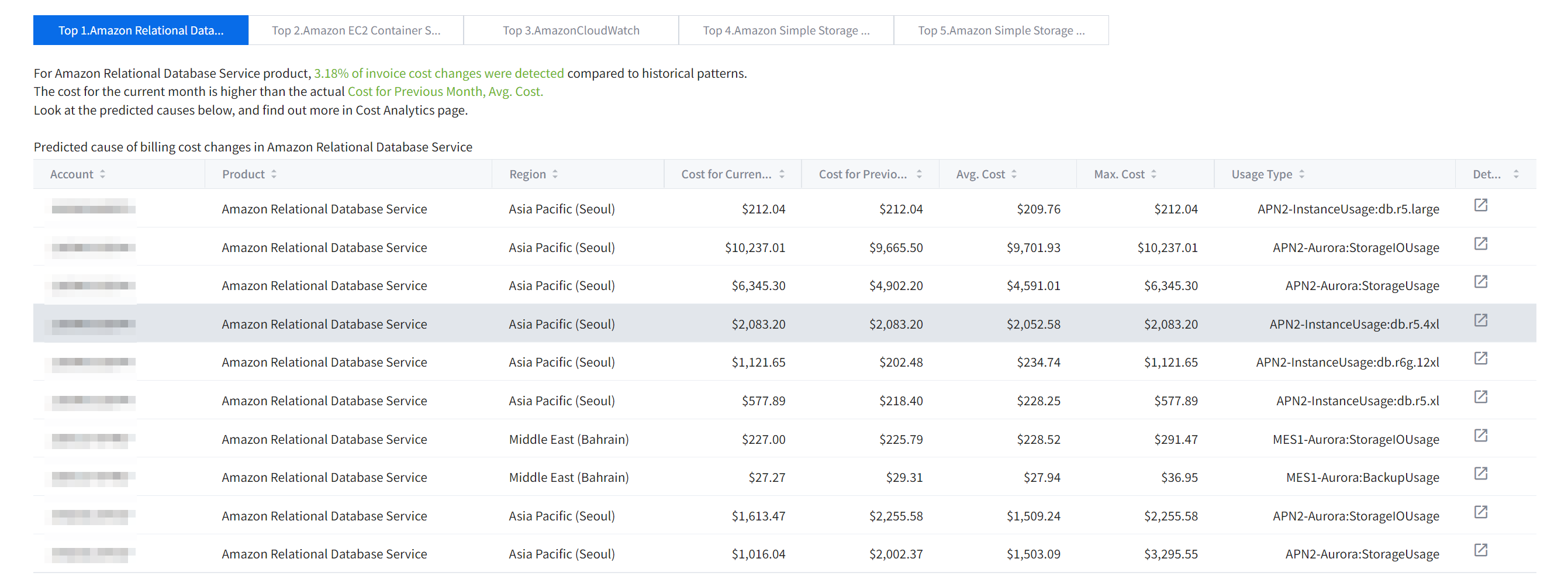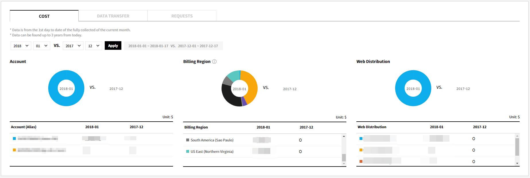 You can check costs based on Account, Product, Region and Service Group, and also view daily trend charts for itemized costs.