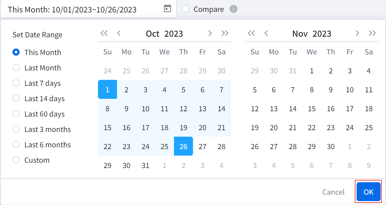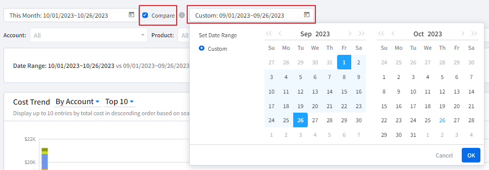 • The Cost calculated by can be selected between Last month or This month