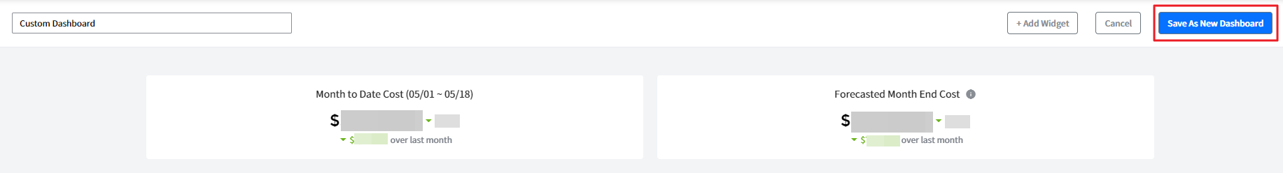 ② Edit the dashboard name and then click the [Save As New Dashboard] button to create a new one.