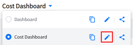 ① Click the [Edit] icon next to the dashboard name to switch to the edit mode which allows you to duplicate and delete widgets.