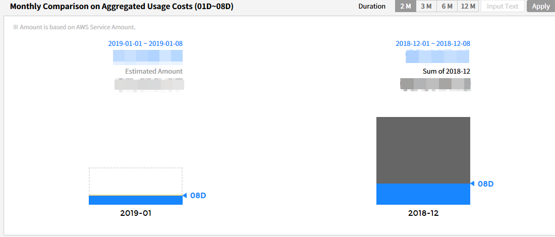 This section allows users to set a search period, and compare and analyze costs. The period can be set up to 12 months. You can select a period from 2, 4, 6, or 12 months, or you can directly set a period by entering a number in the input field, and then click the [Apply] button.