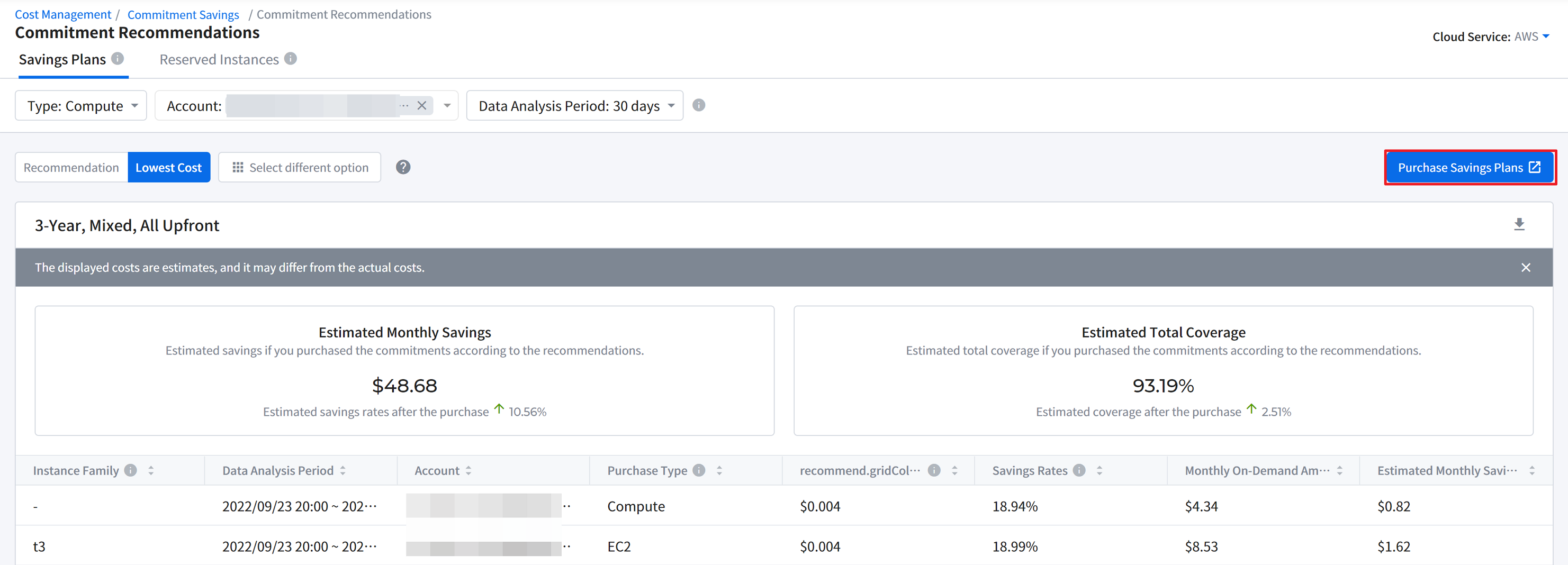 Cost Management > Report