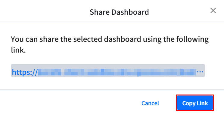 Click the [Copy Link] button in the Share Dashboard popup window to copy the URL link of the dashboard.