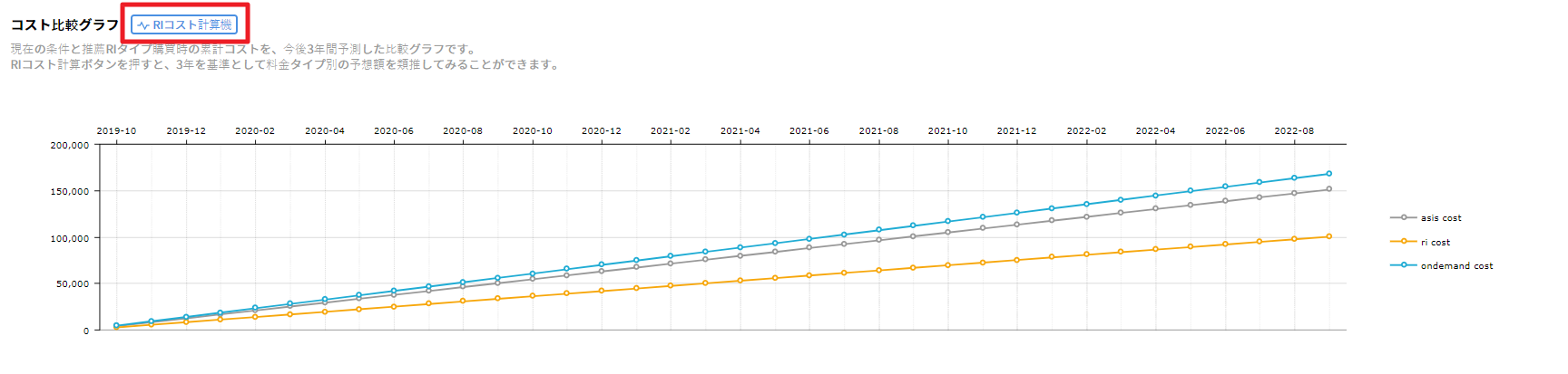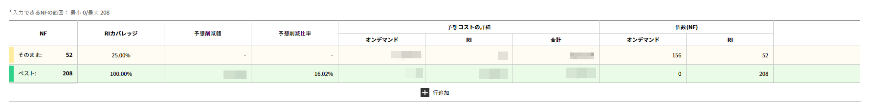 選択した条件別に全体のコストを確認できます。