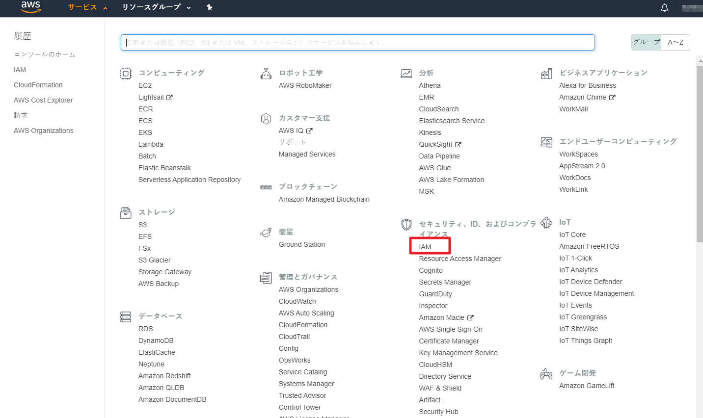 請求分析のトップ画面で検索するサービスと期間を選択します。