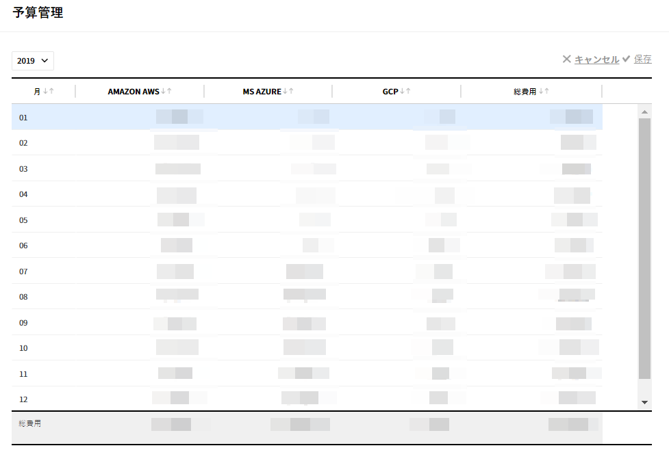 - 月別データ:月別発生コストをグリッドで確認できます。