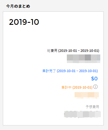 - 集計完了:1日から現在まで集計完了した全体のコストを表示します。