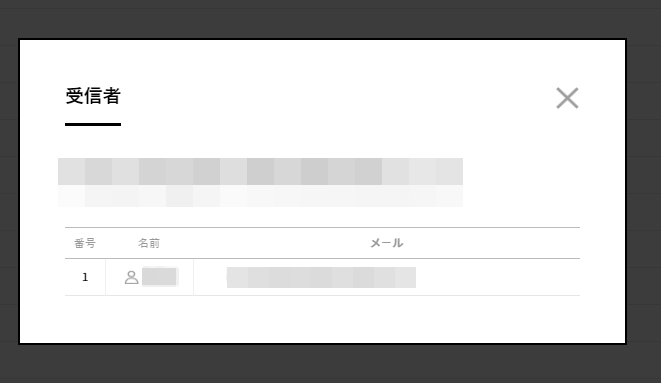 - 受信者:該当の購読メール送信時、受信者に指定された受信者の数が表示されます。クリック時、受信者リストのポップアップを確認できます。
