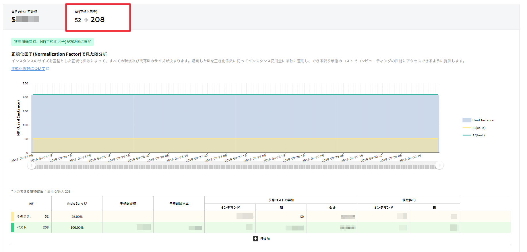 すべての新規及び既存のRIは、インスタンスサイズを基に正規化因子でサイズが決まります。