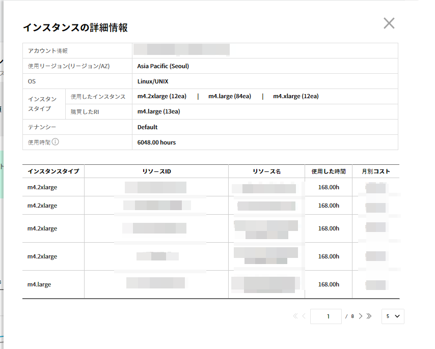 選択した条件別に発生したすべてのコストの詳細内訳を確認できます。